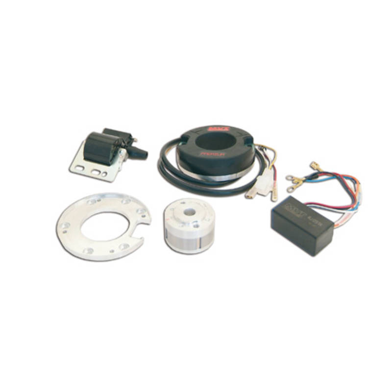 en plus de sa variation tres performante bien adaptee au gros cylindres et de son rotor aluminium super leger il offre l avantage etonnant d offrir 55 watts d eclairage et de recharge batterie il possede aussi de serie un systeme de regulation de la vitesse a 45 kmh .De meme il est important de couper l eclairage par un interupteur dans la journee pour permetre la recharge de la batterie afin de conserver une batterie en etat de charge pour alimenter l allumage. Pour obtenir un allumage digital, il suffit de remplacer le CDI livré par une éprom 564200 et suivre les instructions de calage et de réglage livré avec l‘éprom. Calage 1,5 mm avant point mort haut.