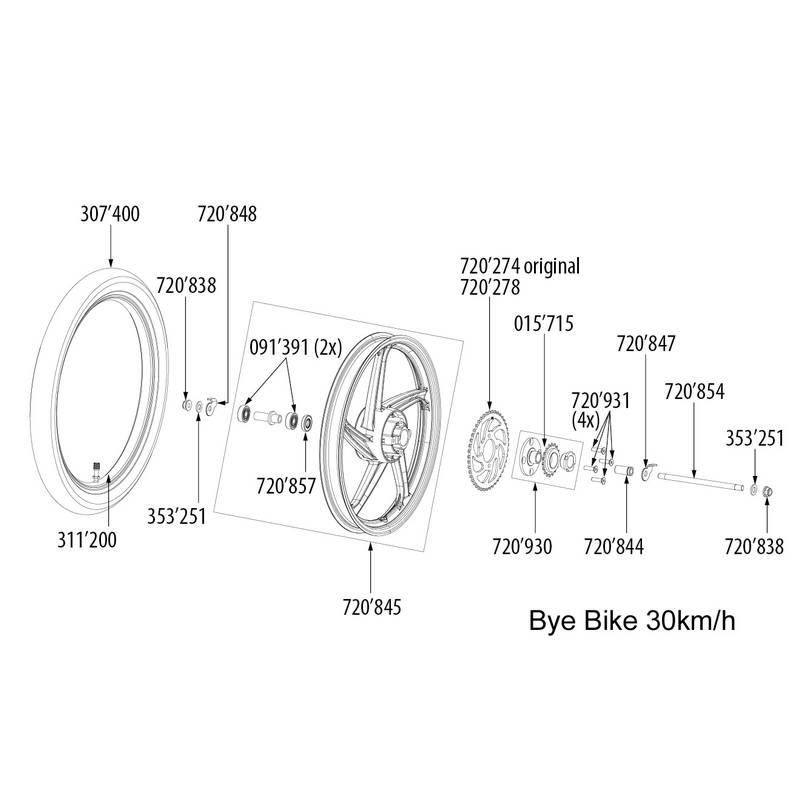 Axe de roue arrière Bye Bike 30 km/h