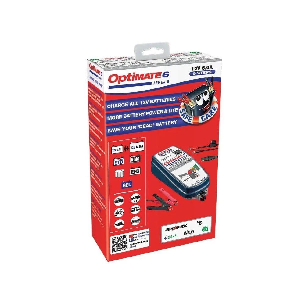 OptiMate 6 Ampmatic est le chargeur de batterie intelligent, entièrement automatique et prêt à l’emploi pour votre moto, voiture/pick-up, bateau ou camping-car.