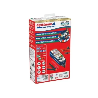 CARACTÉRISTIQUES : L’OptiMate 4 Quad Program effectue des tests avant et après la charge et peut sauver des batteries au plomb et au lithium (LiFePO4) profondément déchargées, même à une tension de 0,5 volt.