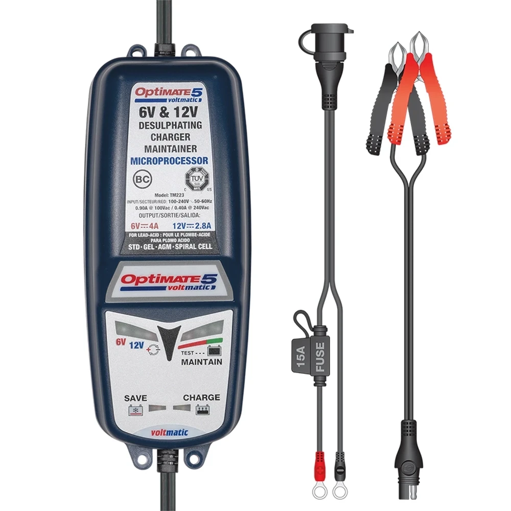 Chargeur tecMATE OPTIMATE 5 VoltMatic 6V/4A et 12V/2.8A Stand./Gel/AGM 3-120Ah