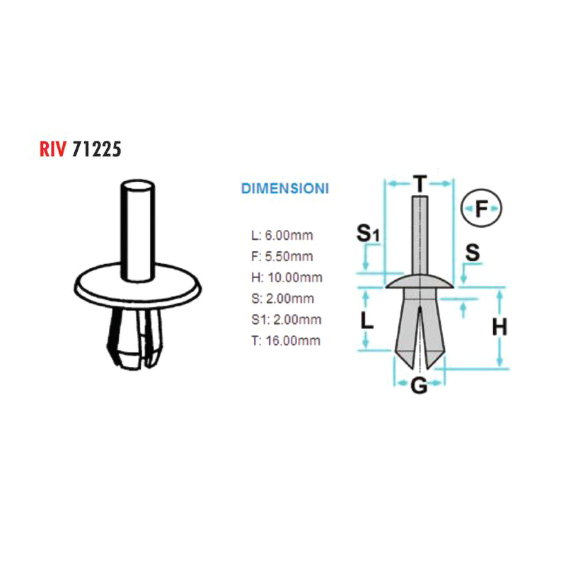 Clip plastique XBIKE (pce) gris habillage Ø 5.5 16x10mm