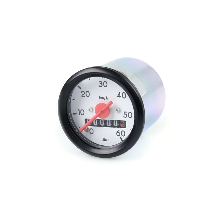 Compteur MMB (Typ VDO) Ø 48mm >60 km/h cadran blanc/bague noir/racc. centré
