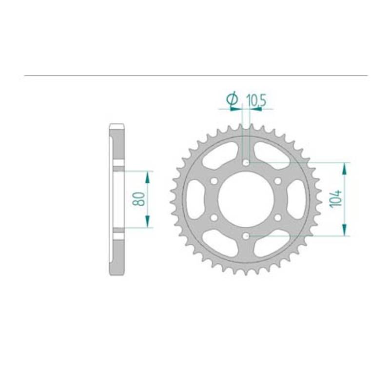 Couronne coudé Cilo/Pony 45 dents 4/5/6 trous