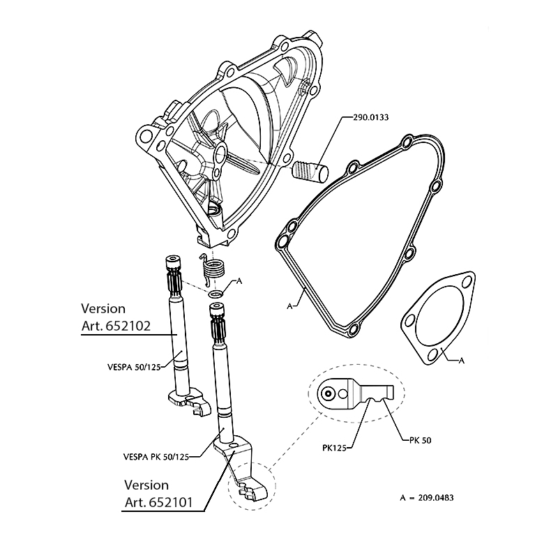 Le nouveau carter d’embrayage Polini pour ta Vespa a en outre un arbre avec le levier de vitesse et
