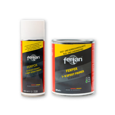 FERPOX s’applique comme un apprêt ou une peinture classique et adhère particulièrement bien au fer, à l’acier, à l’aluminium prétraité ou au métal galvanisé à chaud. Grâce à sa résistance particulièrement élevée, FERPOX est l’apprêt idéal pour tous les métaux fortement sollicités ou exposés à la corrosion. Dans le secteur automobile, FERPOX est utilisé dans les domaines suivants : dessous de caisse, passages de roue, pare-boue, châssis, cadres de vitres, supports de batterie, etc.