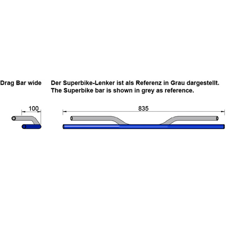 Guidon LSL DRAG BAR WIDE (AD2) Ø 22mm alu argenté 835 – décale 100mm homologé