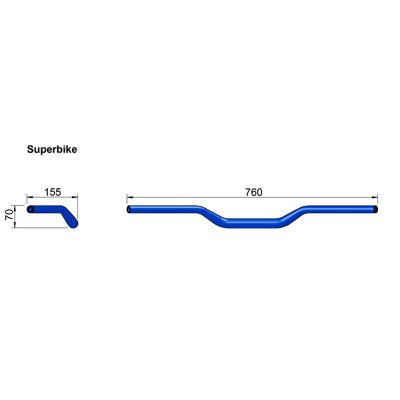 Guidon LSL SUPERBIKE KONI (X01) Ø 22/28.6mm alu bleu 760×70 décalé 155mm hom.