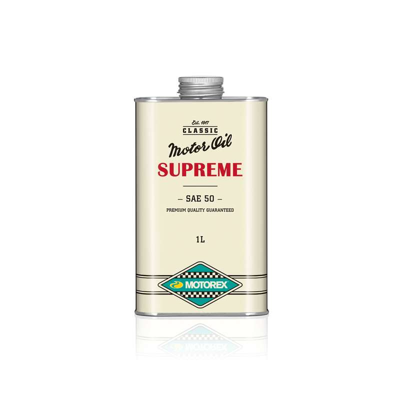 MOTOREX SUPREME SAE 50 a été spécialement développée pour les véhicules classiques. Elle convient parfaitement pour les moteurs essence et diesel avec lubrification forcée sans filtre fin. La viscosité SAE 50 convient pour les moteurs à refroidissement à air ainsi que pour les motocyclettes. Elle peut aussi être utilisée en cas de problèmes de surchauffe ou de consommation d’huile élevée.