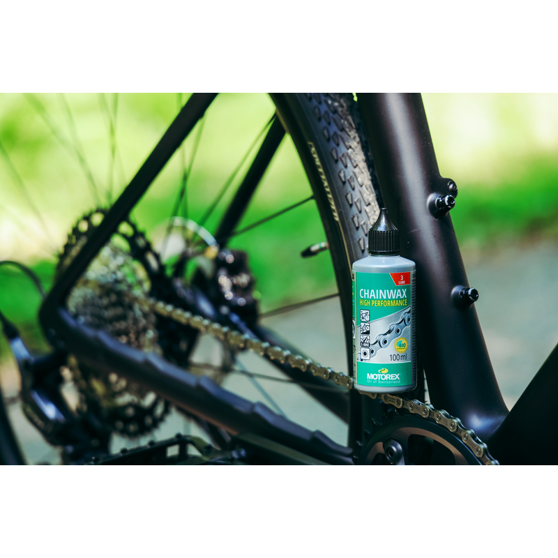 MOTOREX CHAINWAX se base sur une technologie d’émulsion cire/eau spécialement développée et sans aucun solvant. Cette composition innovante forme un film de cire sec, qui empêche autant que possible la poussière et la saleté d’adhérer. CHAINWAX est biodégradable, réduit l’usure et s’utilise sur tous types de chaînes de vélo.
