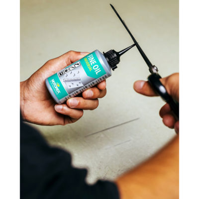 Couper l’extrémité de la canule fermée avec des ciseaux, appliquer l’huile et refermer après utilisation.