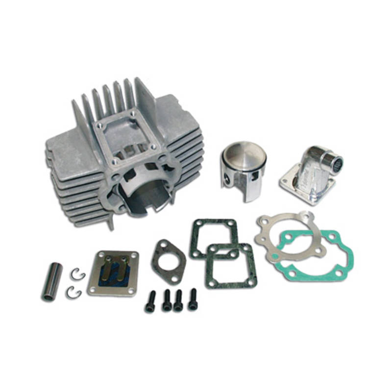 Avec le kit de membrane en aluminium de 43,5 mm, Polini propose un cylindre puissant dans la catégorie des 65 cm3. Comme d’habitude chez Polini, une finition précise et une livraison complète avec membrane et pipe d’admission complètent ce super kit. Nous pouvons vous proposer le carburateur 15/15 de Bing réf. 018531.