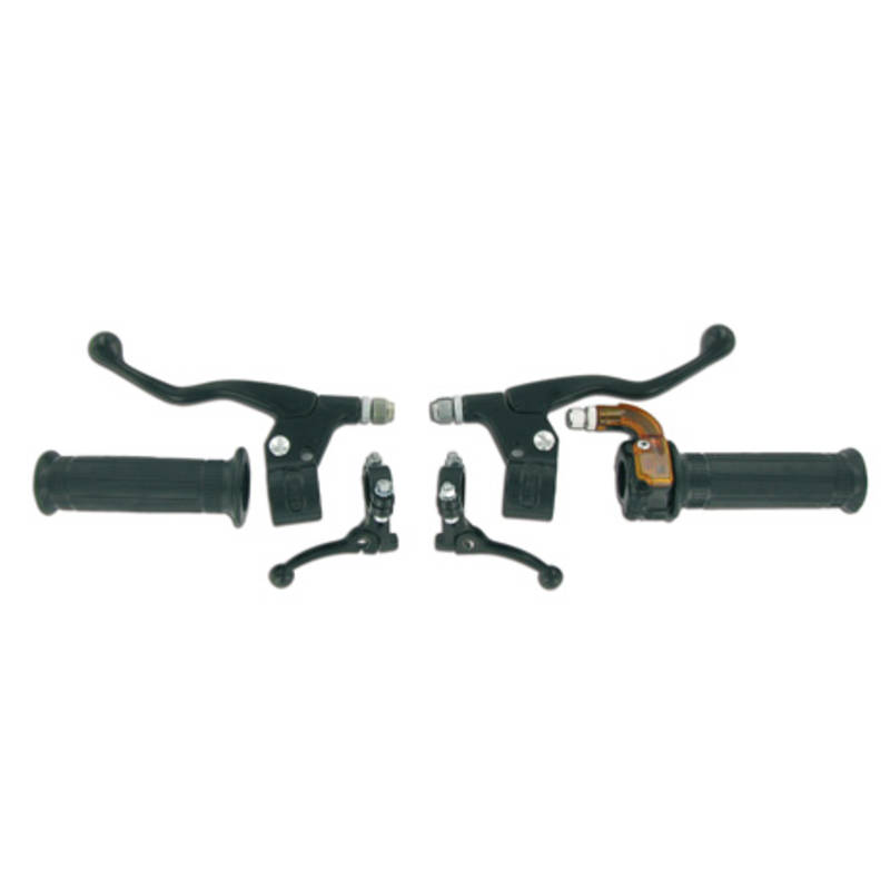 Il se compose d’une poignée des gaz, de deux leviers de frein et de deux petits leviers de démarreur ainsi que des deux poignées en caoutchouc.