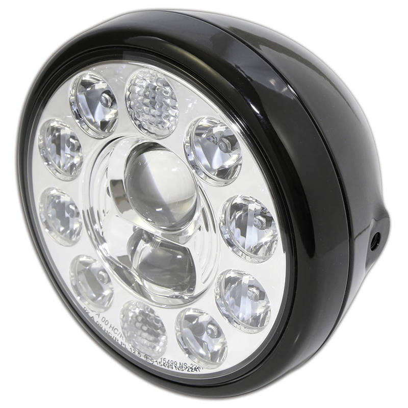 Phare avant LED HIGHSIDER RENO TYPE-1, 7 pouces, phare, feu de croisement et feu de position, carter en métal noir, optique chromée, E-Homologation
