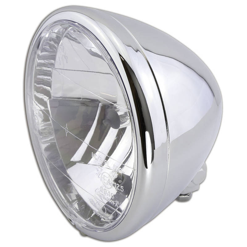 Phare avant SHIN YO 6 1/2 pouces EL PASO, phare, feu de croisement, feu de position, carter en métal, chromé, fixation inférieure, E-Homologation