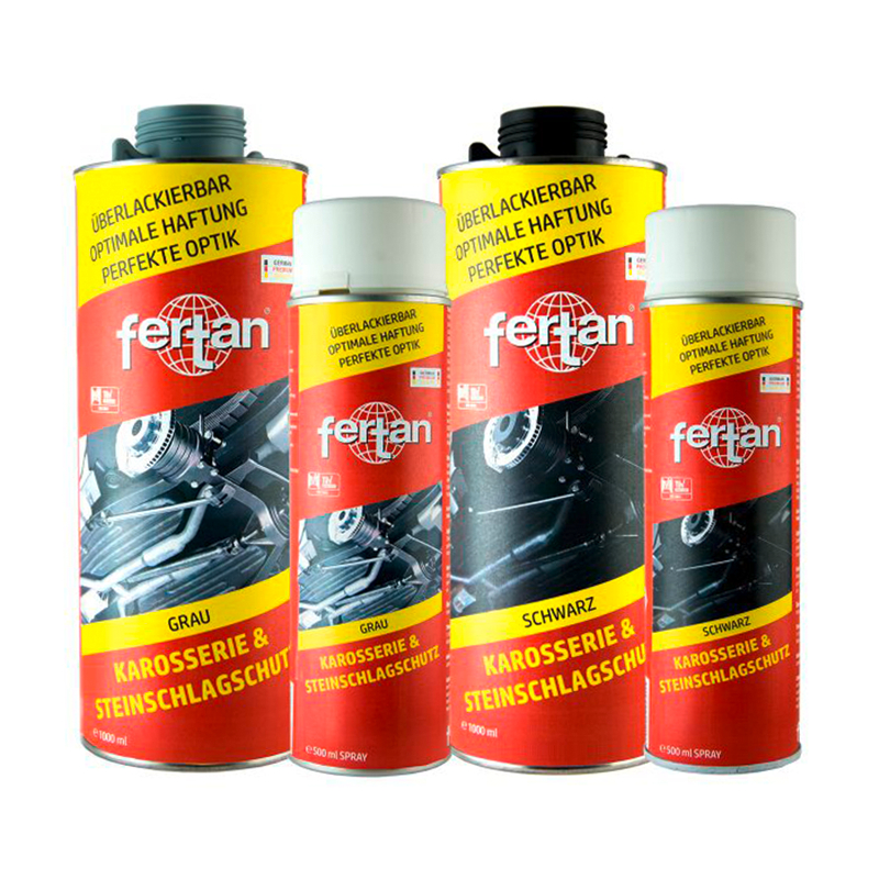 La protection pour carrosserie et contre les projections de pierres FERTAN protège contre l’essence, l’huile, l’eau et le sel. De plus, ce produit possède d’excellentes propriétés d’amortissement et d’absorption acoustique.