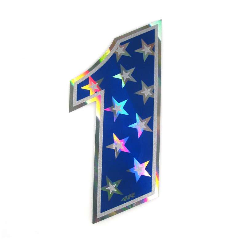 Sticker 4R RACING no. 1 en bleu avec étoiles blanches (100 x 140mm)