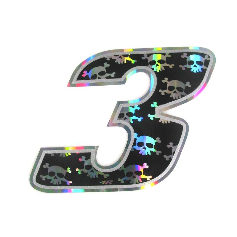 Sticker 4R RACING no. 3 en noir avec crâne blanc (100 x 140mm)