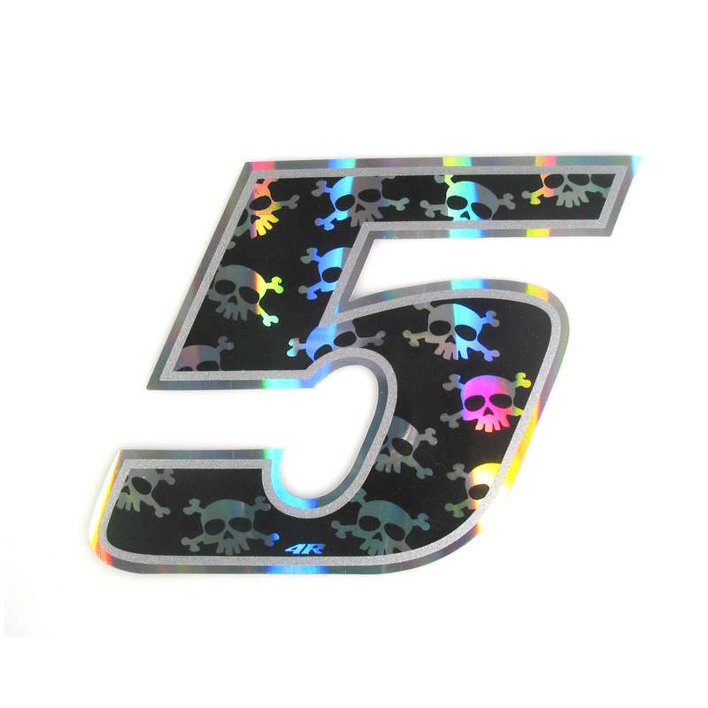 Sticker 4R RACING no. 5 en noir avec crâne blanc (100 x 140mm)