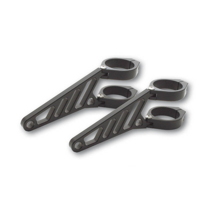 Support de phare (set) HIGHSIDER CNC alu, long, noir, pour tubes de fourche 38-41mm