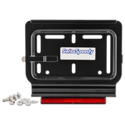 Support de plaque moto / scooter inox revêtement en poudre noir, catadioptre incl.
