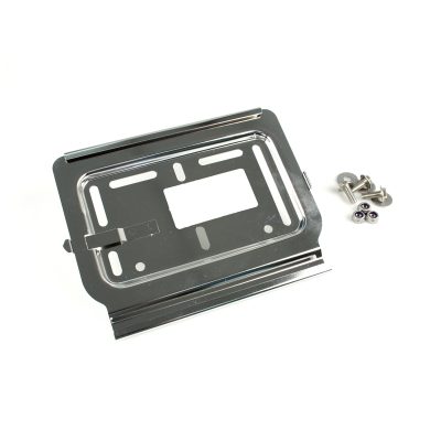 Support plaque SwissSpeedy moto acier chromé insertion gauche