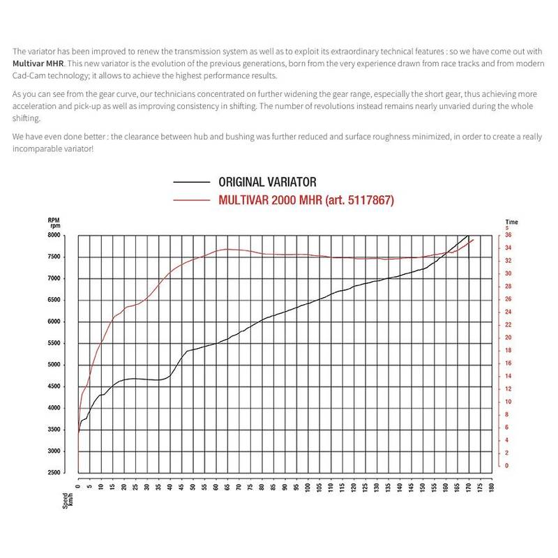 Avec un variateur aux caractéristiques techniques si avancées, ne vous étonnez pas si votre scooter devient plus pointu, si le changement de vitesse est plus doux, et qu’on remarque une plus grande « tranquillité » mécanique aux vitesses élevées et une constance de rendement inconnues dans la version de base.