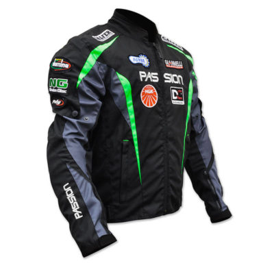 Veste moto sponsor été. Tissu polyester, doublure maille respirant, largeur des bras et de la taille réglable, fermeture éclair, 2 poches extérieures, 1 poche intérieure avec fermeture éclair.